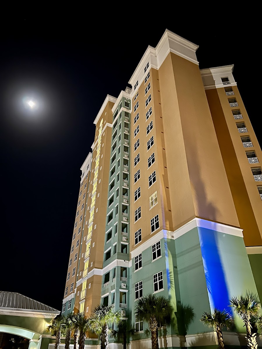 Great low density resort on the quiet side of PCB off Thomas drive. Massive and beautiful pool and rarely crowded since only three units per floor and very limited number of rentals in the complex. The resort is very low-key and quiet and we never experienced any elevator wait time or crowds. Bonus convenient underground parking. The units are massive and have the biggest balconies in PCB. It's the only place we stay in PCB now.